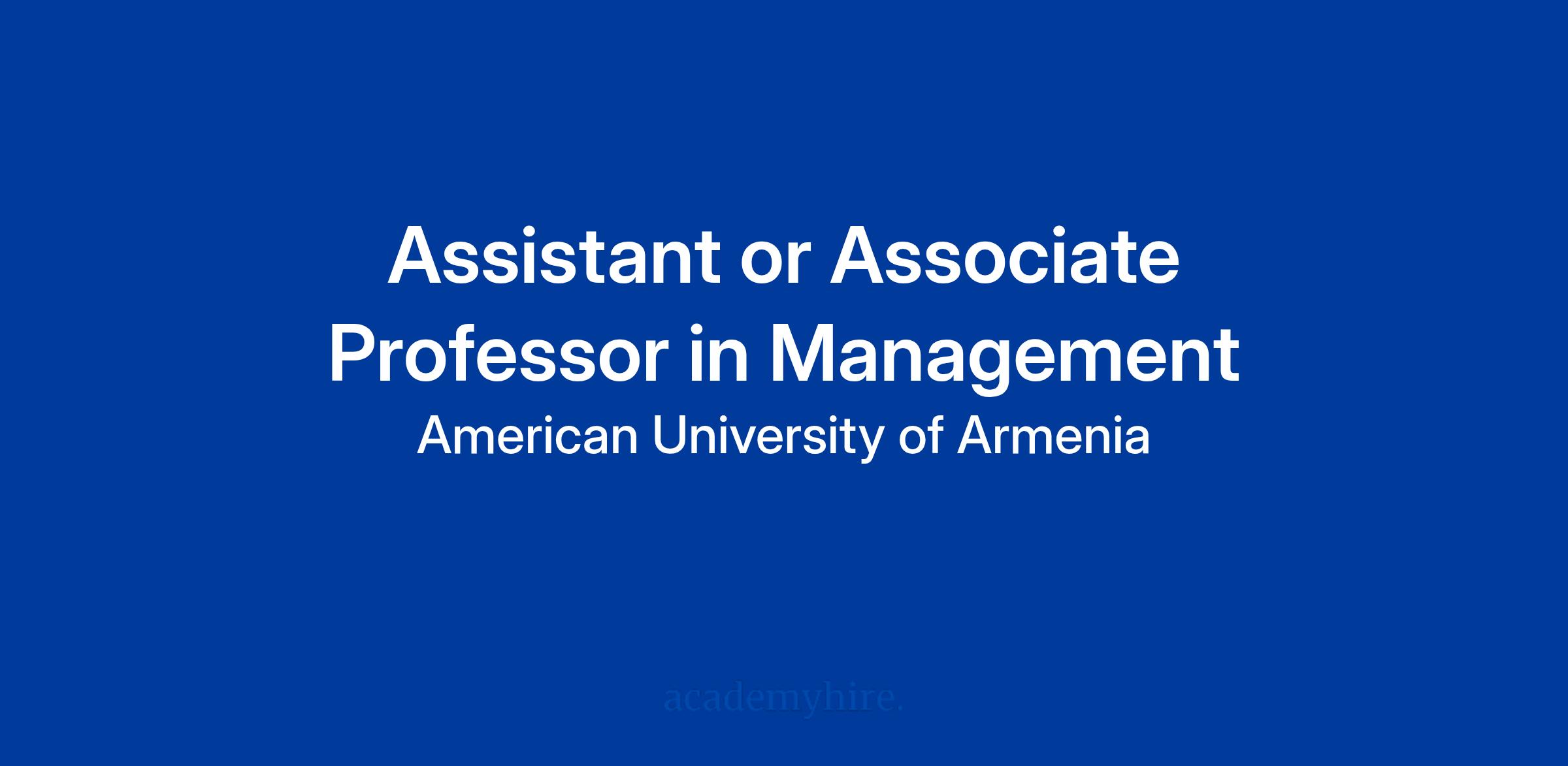 The American University of Armenia (AUA) invites applications for a full-time faculty position in Management at the Manoogian Simone College of Business and Economics (CBE). Located in Yerevan, Armenia, AUA offers a unique opportunity to teach, research, and collaborate in a dynamic, internationally recognized institution affiliated with the University of California System. The position is open at the Assistant or Associate Professor level, depending on qualifications and experience.