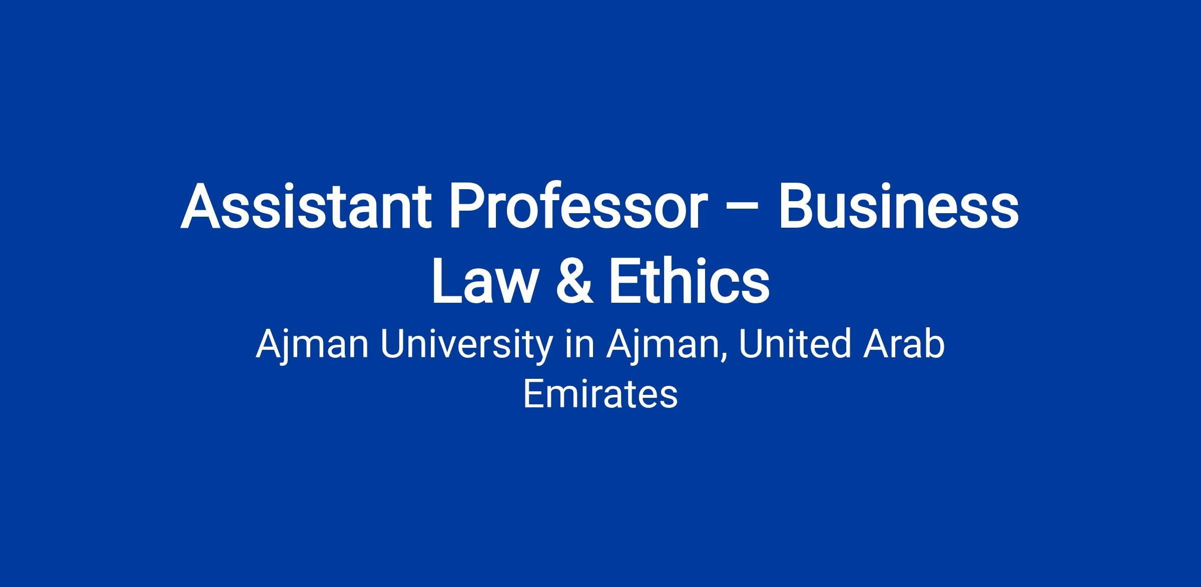 The Ajman University invites applications for an Assistant Professor in Legal Studies and Business Ethics. The role starts in Fall 2026/2027.