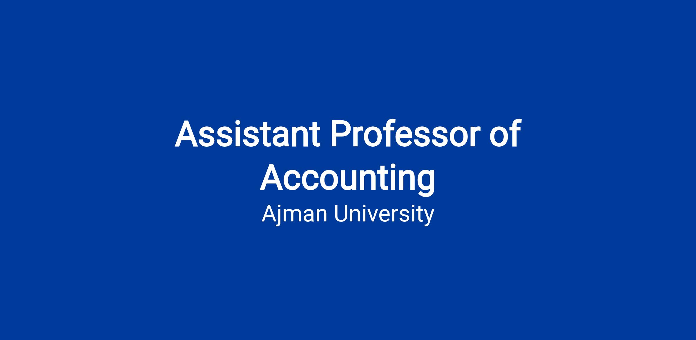 Ajman University invites applications for the position of Assistant Professor of Accounting. The College of Business Administration is AACSB accredited, reflecting high standards in teaching, research, and industry engagement.