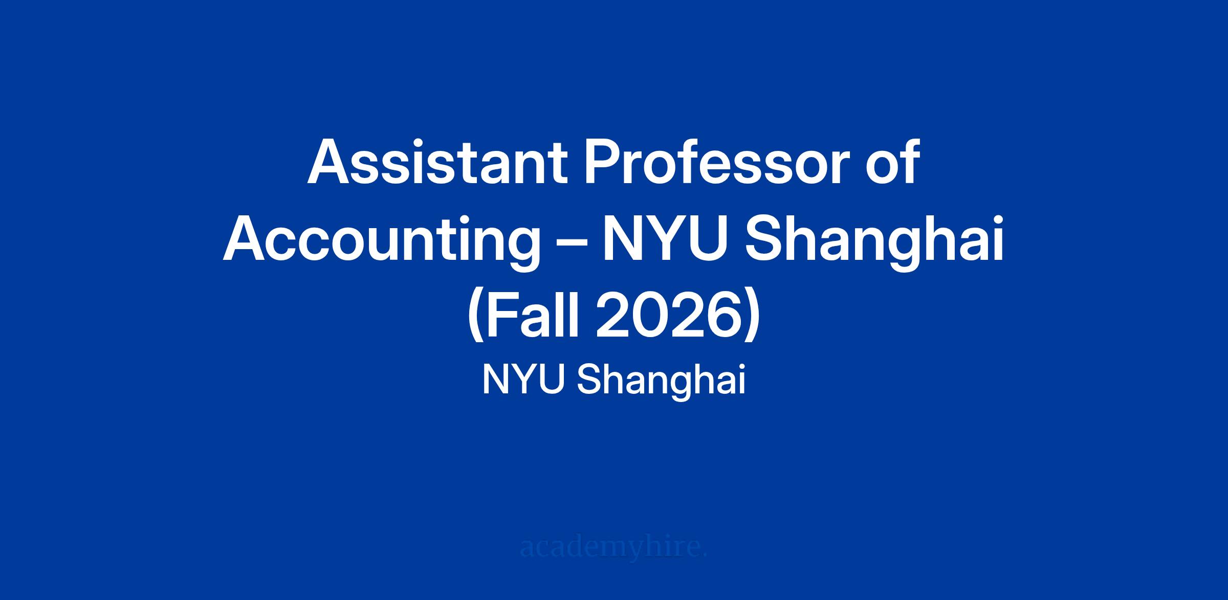 This job is for an Assistant Professor in Accounting at NYU Shanghai. The work starts in Fall 2026. You need a PhD in Accounting or a close field by September 1, 2026. The job asks for strong research skills. It also asks for caring and clear teaching.