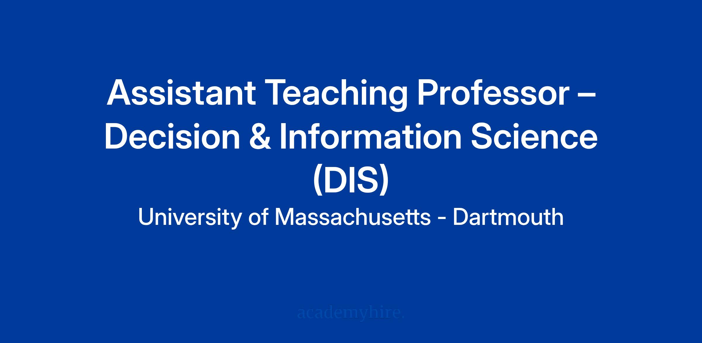 The Charlton College of Business at the University of Massachusetts Dartmouth invites applications for a full-time Assistant Teaching Professor in Decision & Information Science (DIS). This role offers a chance to teach and mentor students across both undergraduate and graduate programs in Information Systems and Technology Management.