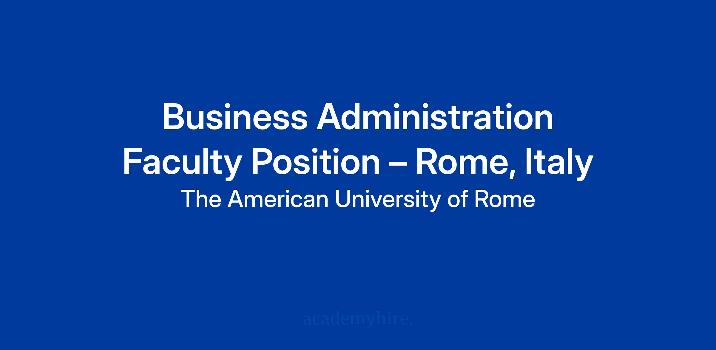 The American University of Rome (AUR) invites applications for a full-time Open Rank Professor in Business Administration, beginning in Fall 2026. This faculty role offers the chance to teach in a diverse, international environment while helping to grow a well-established Bachelor of Science in Business Administration (BSBA) program with concentrations in Economics, Finance, Marketing, and Social Marketing. AUR also offers a BS in Travel and Tourism Management.
