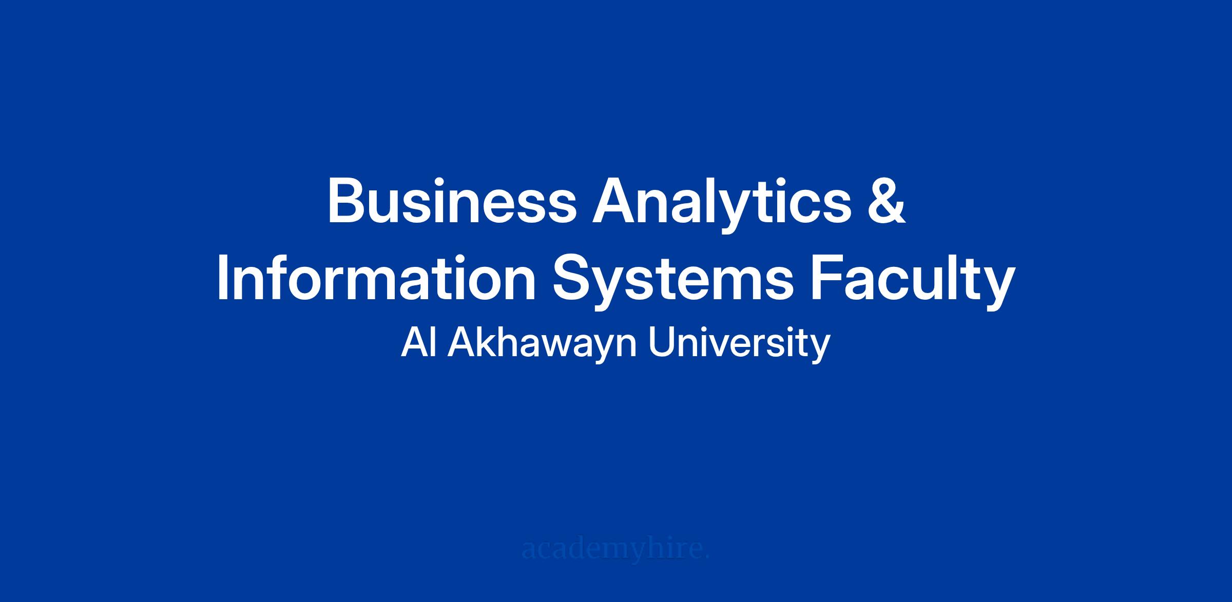 Al Akhawayn University in Ifrane (AUI), Morocco, invites applications for a full-time faculty position in Business Analytics and Information Systems, starting Spring 2026. The role is open at the Assistant, Associate, or Full Professor level, depending on qualifications and experience. Candidates should be able to teach a wide range of undergraduate and graduate courses, with a particular strength in finance and information systems.