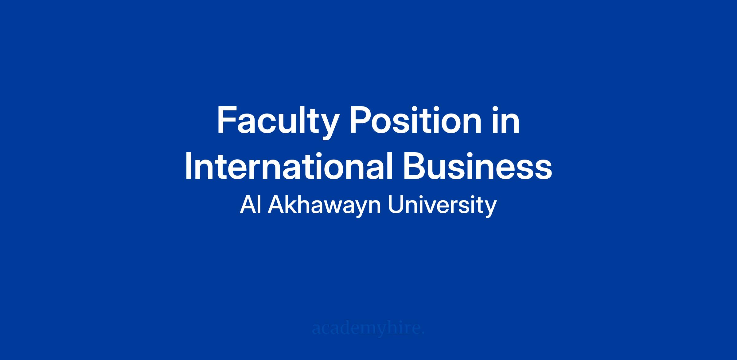 Al Akhawayn University in Ifrane (AUI), Morocco, invites applications for a full-time faculty role in International Business. The appointment begins Spring 2026 within the School of Business Administration (SBA). The position is open at the Assistant, Associate, or Full Professor level, depending on qualifications.
