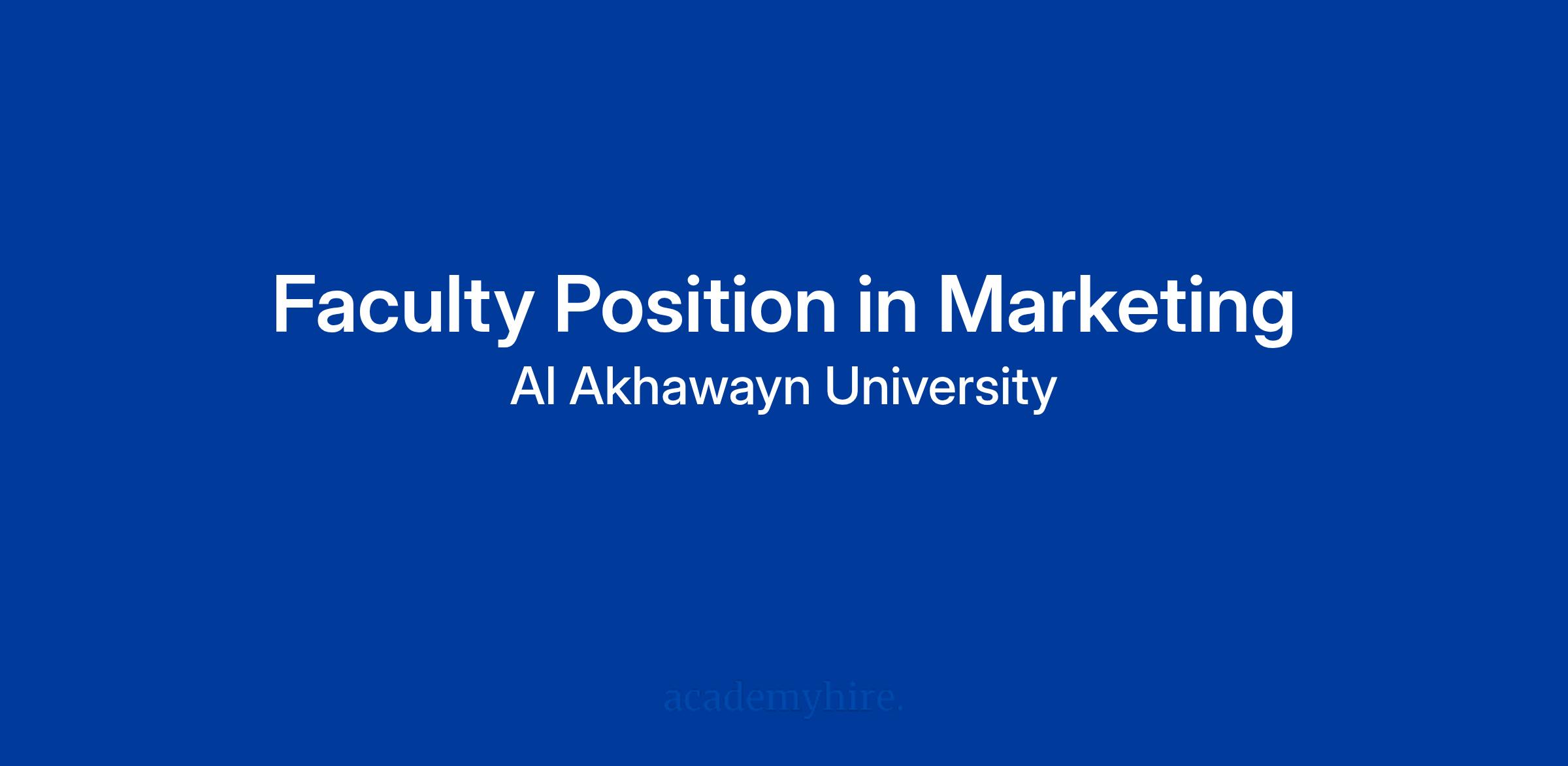 The School of Business Administration (SBA) at Al Akhawayn University in Ifrane (AUI), Morocco is seeking applications for a full-time faculty position in Marketing starting Spring 2026. This opening is available at the Assistant, Associate, or Full Professor level, depending on qualifications and academic experience.