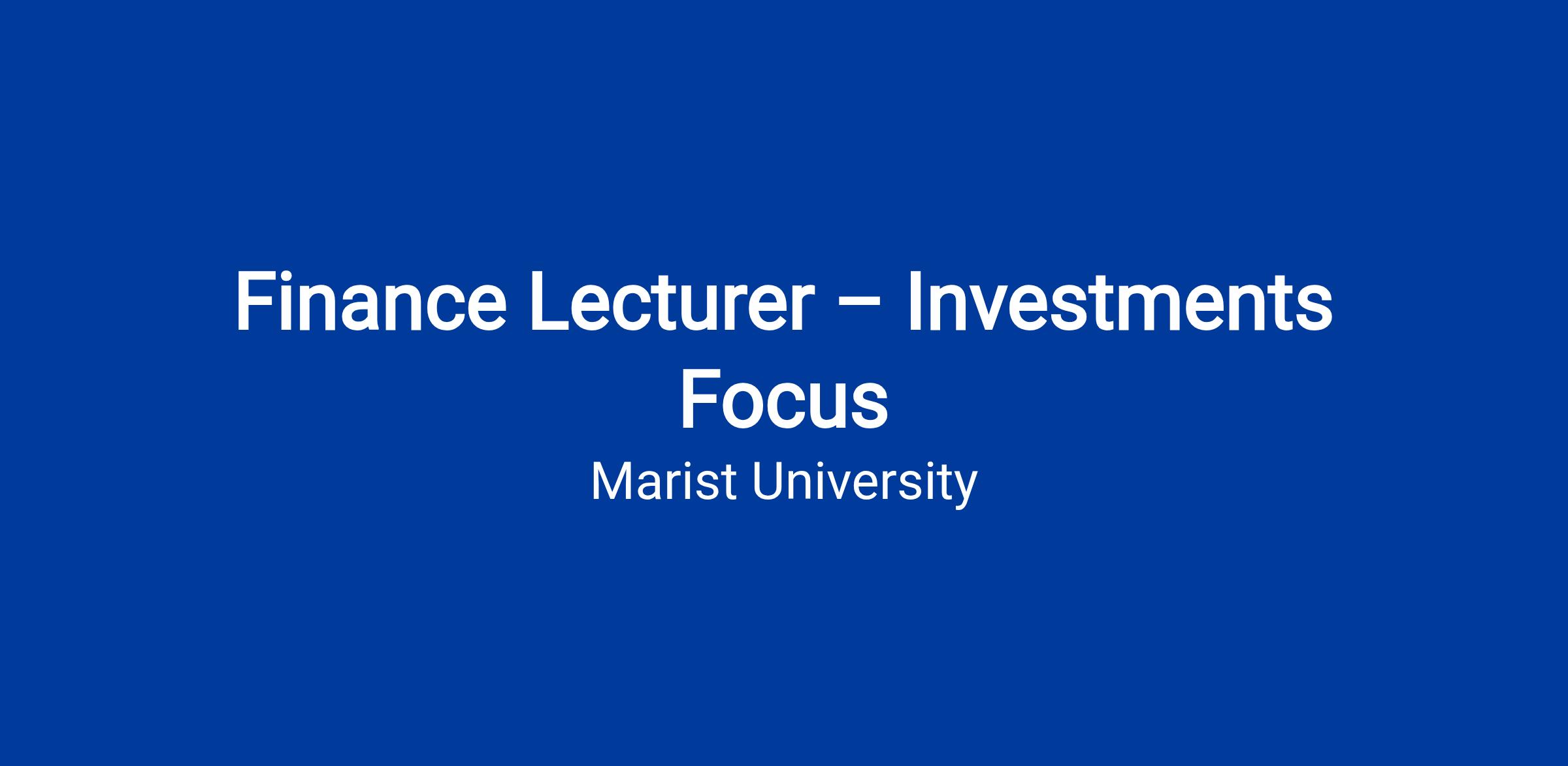 Marist University invites applications for a full-time Finance Lecturer with a focus on investments and financial literacy. This is a teaching-centered, 9-month term faculty position based at our main campus in Poughkeepsie, New York.