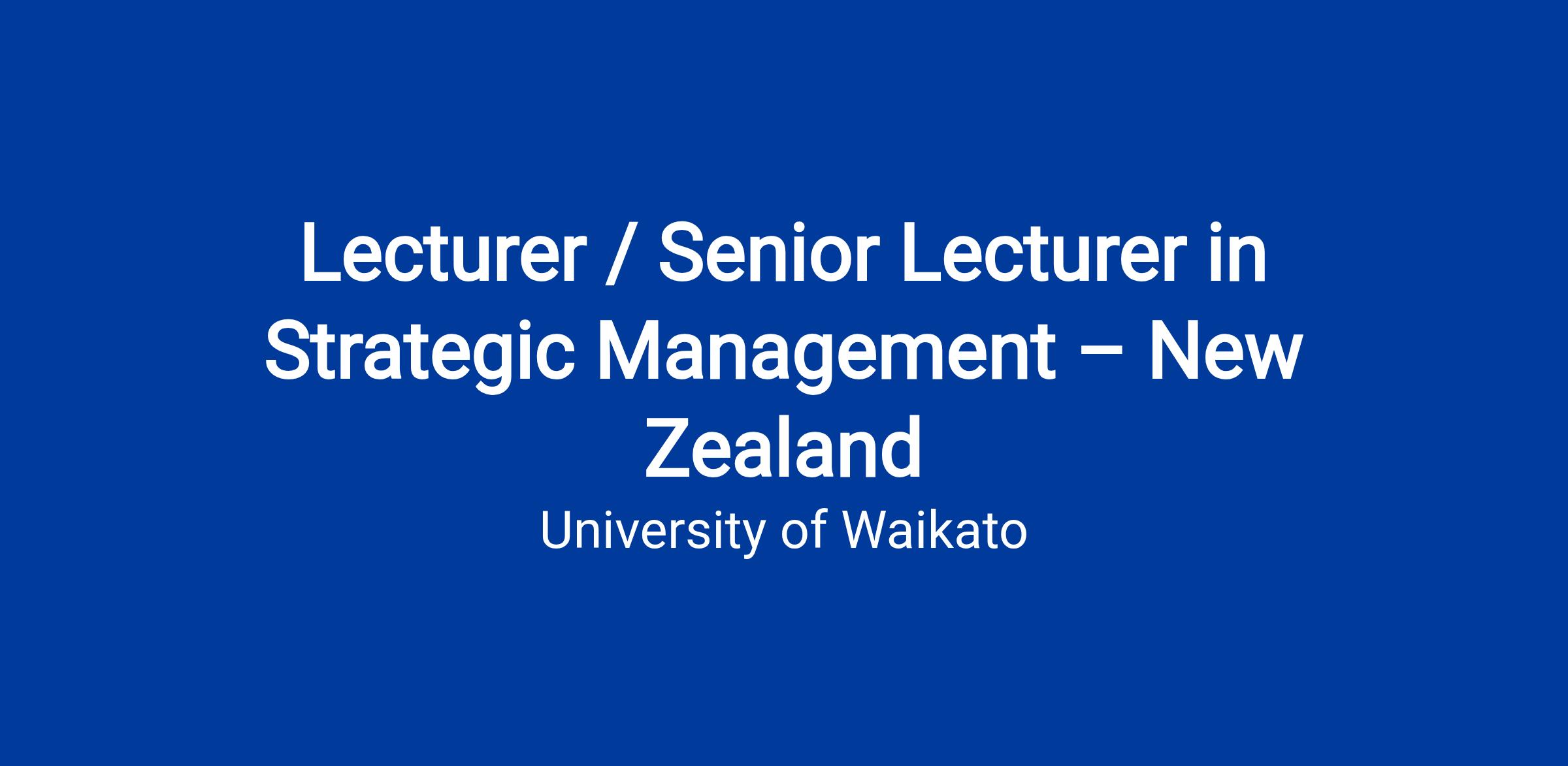 The University of Waikato is hiring a Lecturer or Senior Lecturer in Strategic Management.