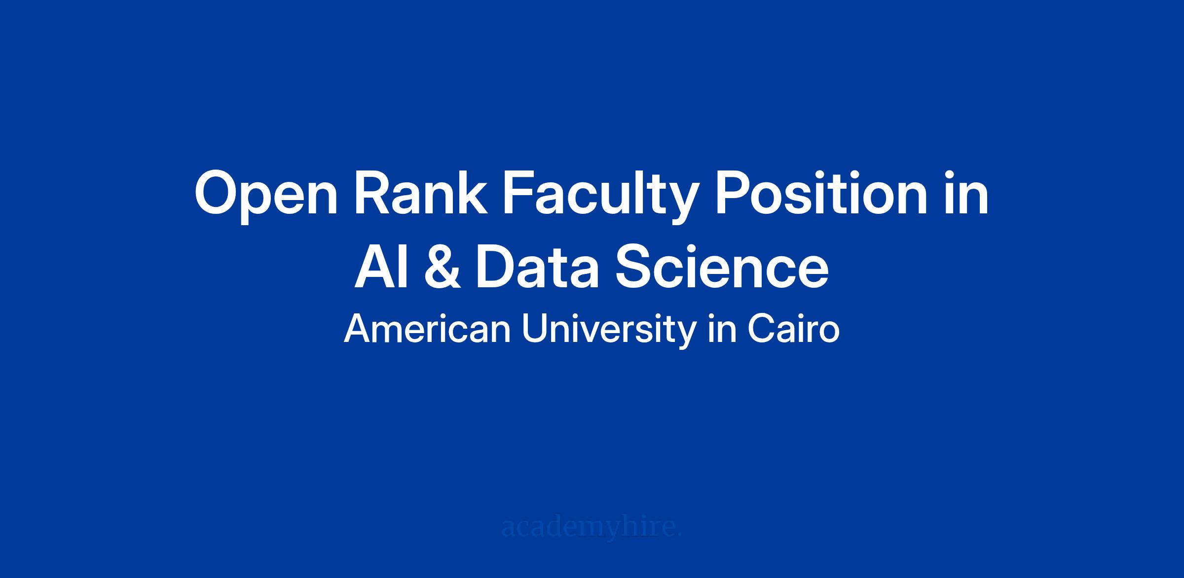 The American University in Cairo (AUC) is seeking an accomplished scholar for the Onsi Sawiris Endowed Professorship in Artificial Intelligence and Data Science at the Onsi Sawiris School of Business. This full-time, open-rank faculty position—beginning Fall 2026—invites exceptional academics or industry leaders to advance AI and data science education and research across business disciplines. The role supports teaching, research, and leadership that foster innovation, interdisciplinary collaboration, and positive societal impact.