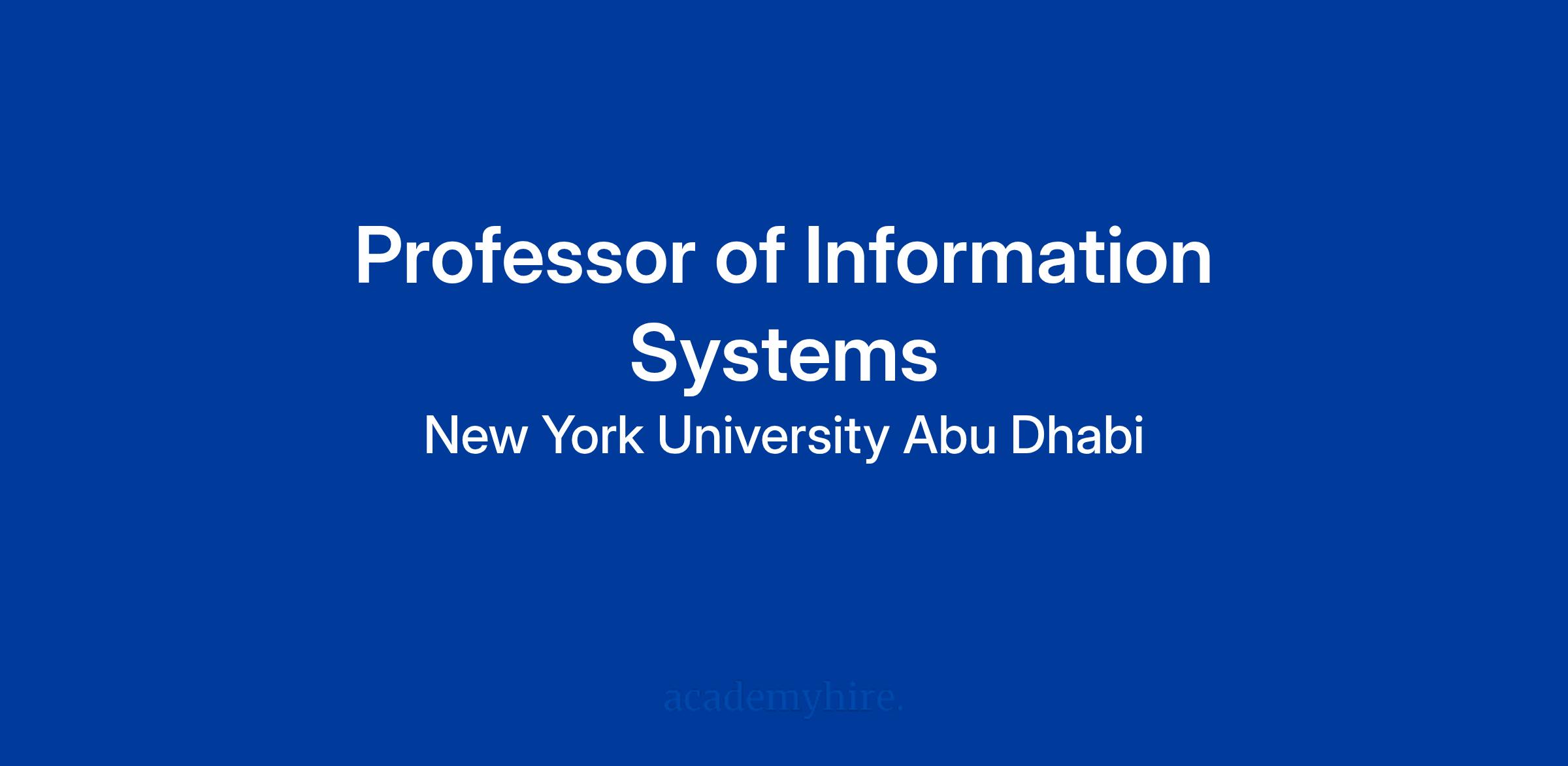 This job is for a full-time professor in Information Systems at NYU Abu Dhabi. The role is part of Stern at NYUAD, a new and growing business school. Do you enjoy work at the edge of tech and business? This role may fit you well. You will teach, guide students, and build research that helps people understand how tech shapes our world.