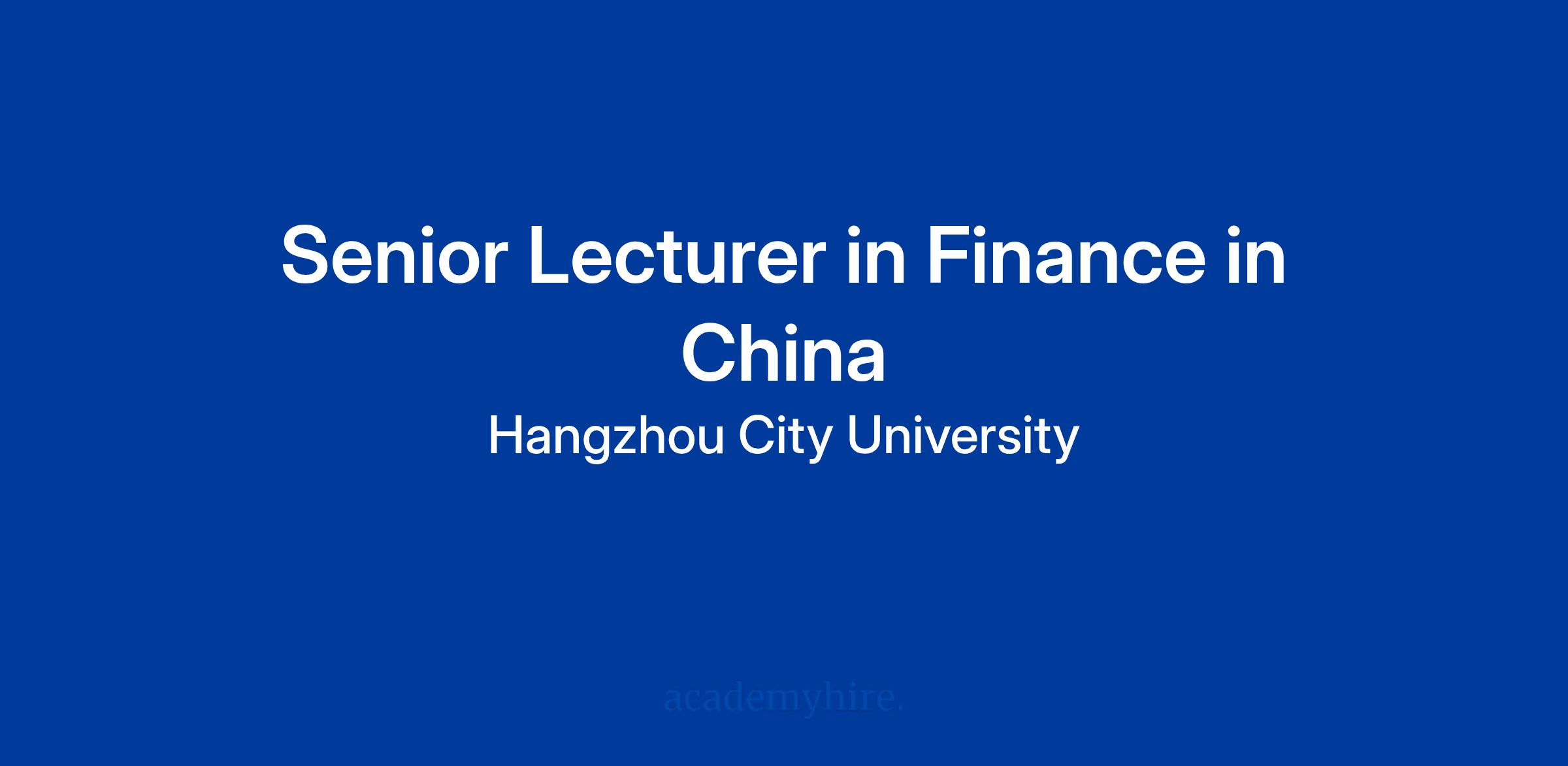 This job is for a Senior Lecturer in Finance and Economics. It is in Hangzhou City in China. Hangzhou is a big and calm place. Many people know it for soft green hills and a kind local culture. The school wants someone who enjoys teaching, who likes simple ideas, and who works well with many types of students. Think of a class where students listen, ask questions, and look to you for help. This is the heart of the job.