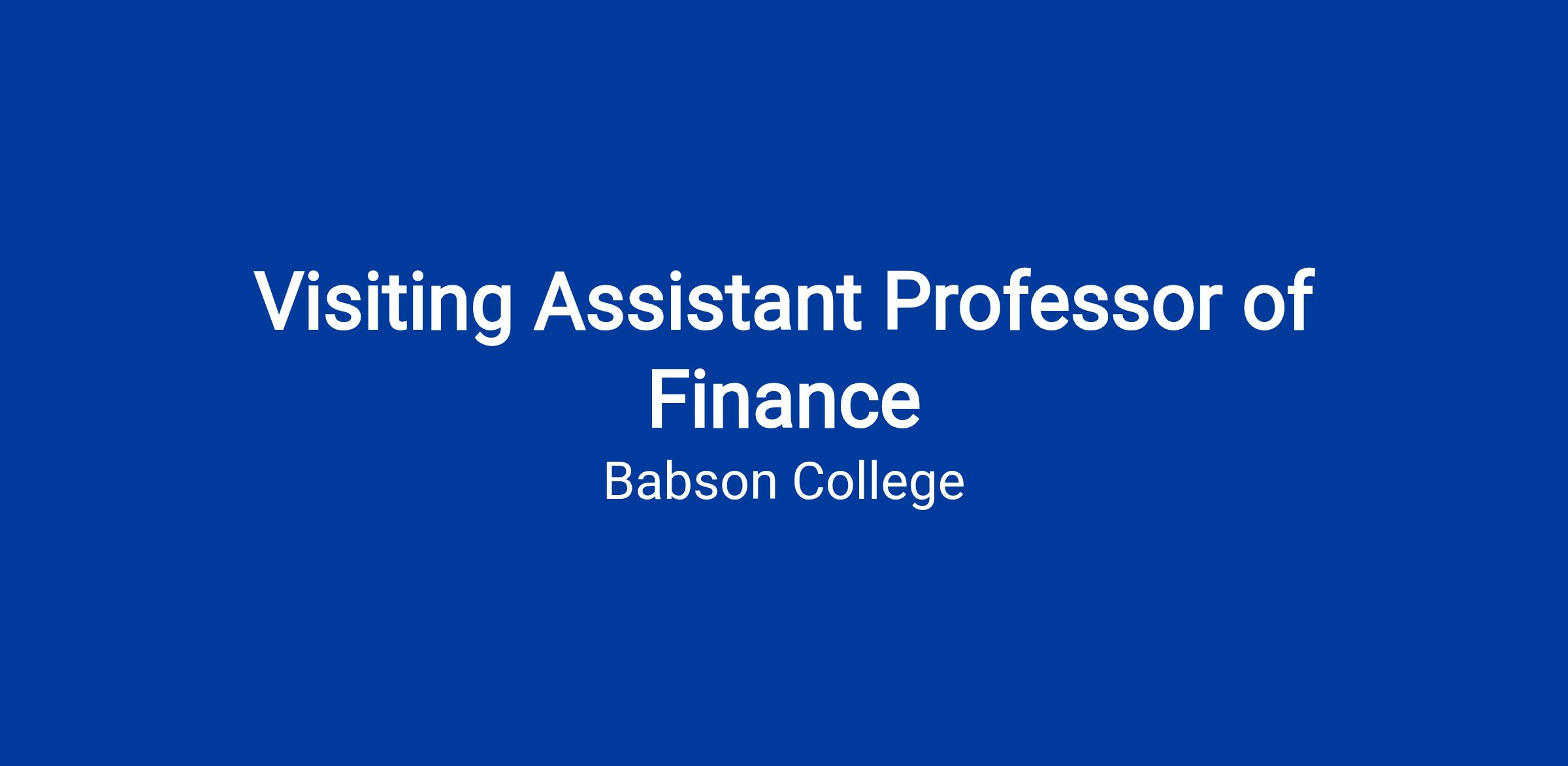 As a Visiting Assistant Professor of Finance, you will contribute to Babson’s mission of educating entrepreneurial leaders who create economic and social value worldwide.