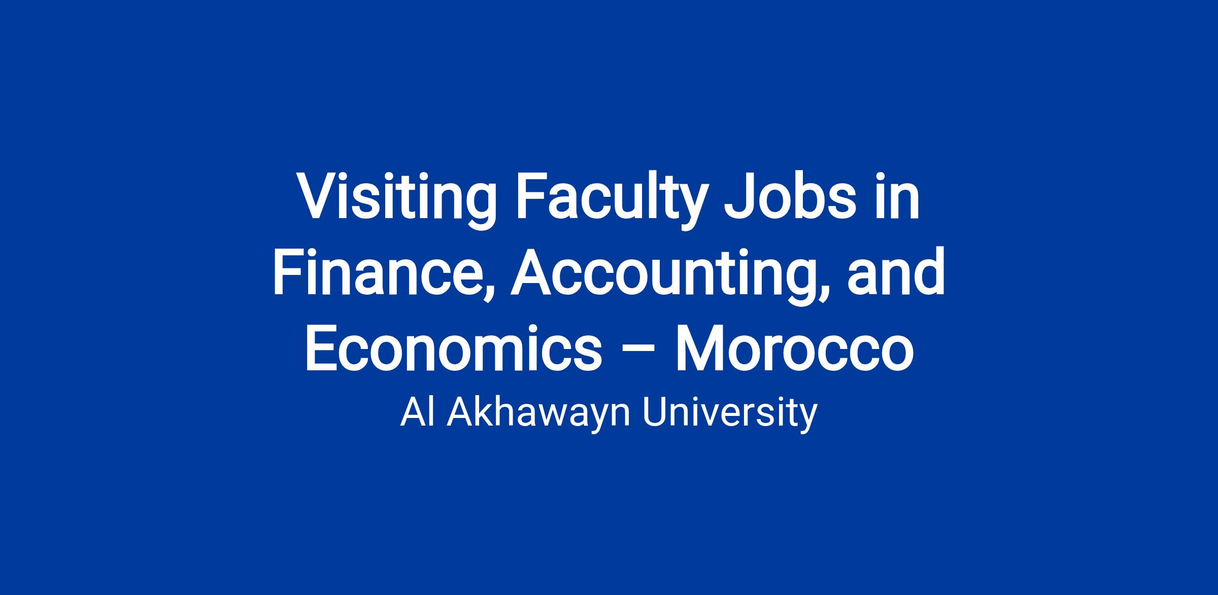 The Al Akhawayn University in Ifrane (AUI) invites applications for visiting faculty jobs in Finance, FinTech, Accounting, and Economics starting Fall 2026.